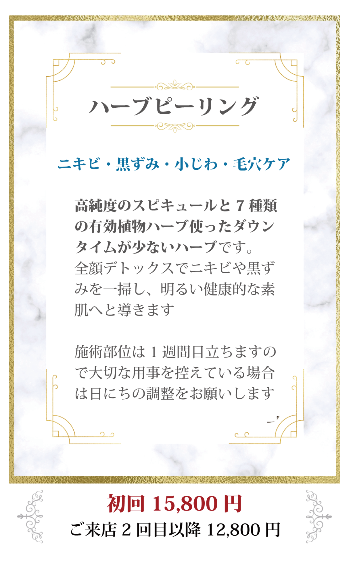 ■ ハープピーリングコース (初回 15,800円 ・ 12,800円)